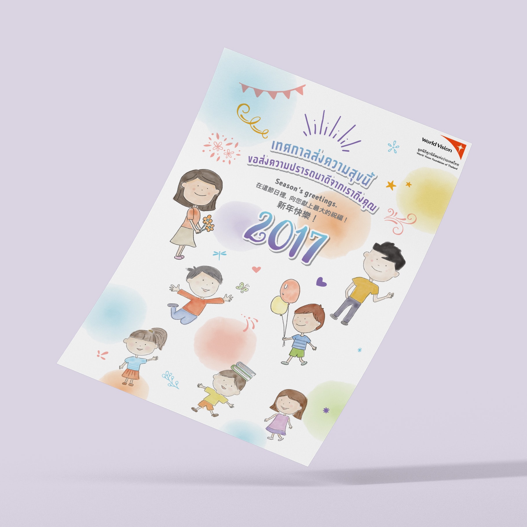 Christmas card design for World Vision Foundation of Thailand, is an international partnership of Christians whose mission in working with poor and oppressed to promote human transformation, seek justice. This card will send to sponsors who supported children in Thailand.